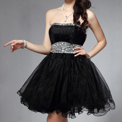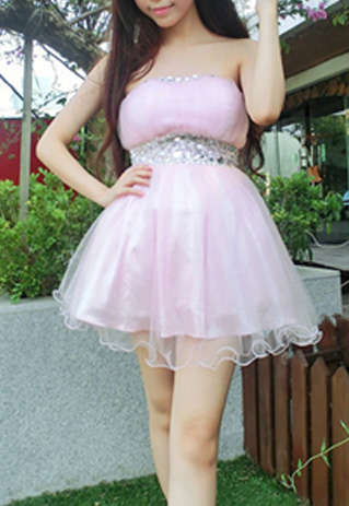 Obviously,you will be the most sexy and elegant goddess in this dress. It features strapless style,with rhinestone for decoration,dazzling and glamorous. Gathered waist design with tutu hemline. If pairing with your sexy high-heeled shoes,you are unparalleled.