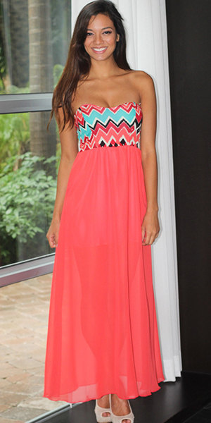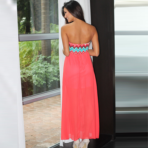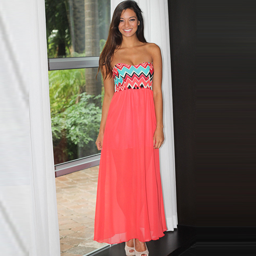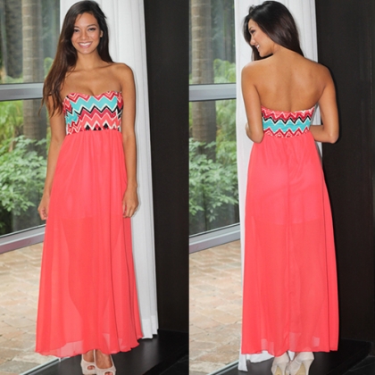 Elevate your look from everyday to enchanting with this strapless dress. Wave-stripe spliced design
