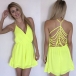 Have a standout summer in this jumpsuit. Features with spaghetti straps off-shoulder and hollow out backless design. V-neck shows your cherming neckline. Elasticized waistline with drawstring to help gather your waistline.A good partner in summer.
