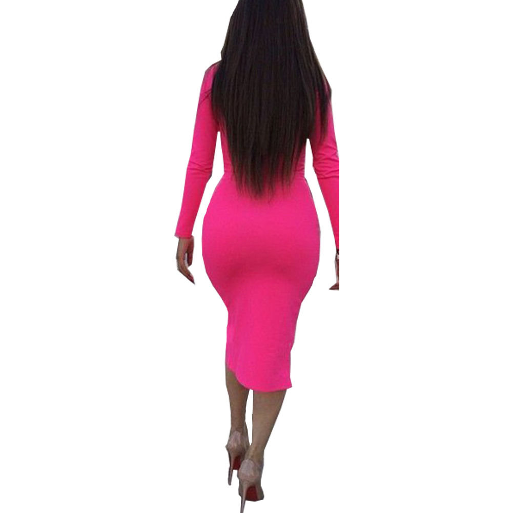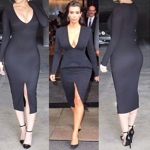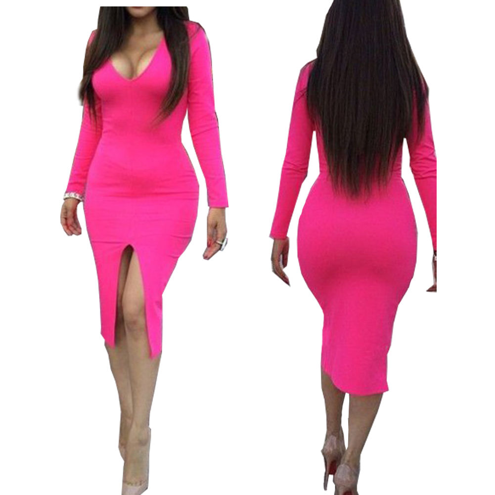 Features solid color,sexy v-neck,long sleeve and slit hemline,sexy and charming. Slim fit and package hip design show your seductive curve. Pair it with your sexy high-heeled shoes and charming hairdo,your beauty is unparalleled.