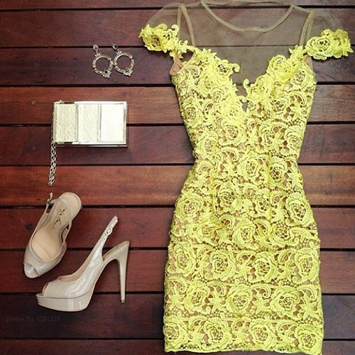 You certainly will be the focus and will make men drool in this dress. It features see-through gauze splice design,hollow out lace style,sexy and feminine. Wearing it to a party,you will receive envious eyes.