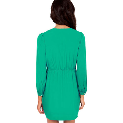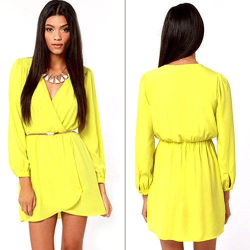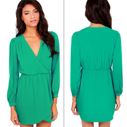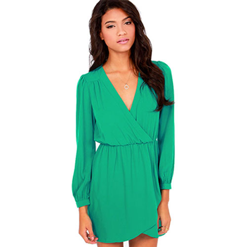 Sometimes you can try some bold color dress to show your youth and vitality. How about this one,featuring bright color,sexy v-neck and long sleeve design. Your beautiful skin and charming curve will shine in this dress.