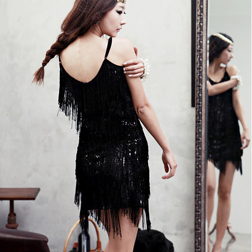 Such a dazzling and beautiful dress. It features sling style,sexy v-neck and solid color design. With tassels and sequins for decoration,make it more chic and unique. Perfect for party,nightclub,dancing party,gathering,etc occasions.