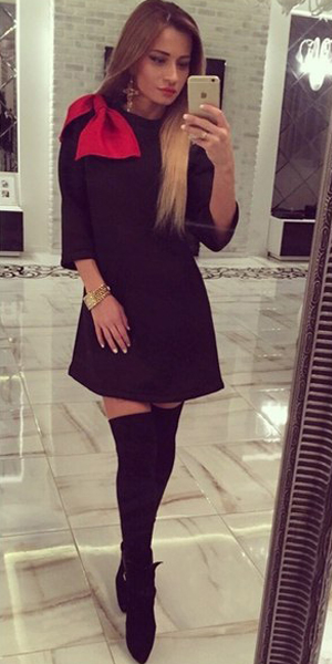 Features 3/4 sleeve,round neck and a sleek silhouette design. The most eye-catching design is its red