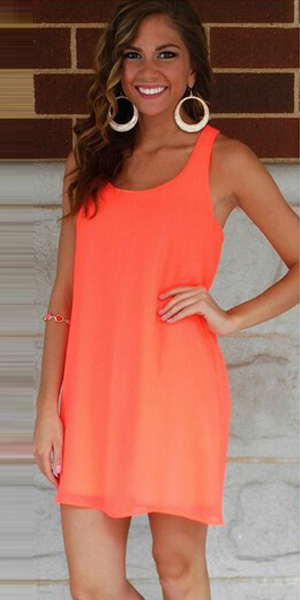 with sleeveless and round neck design. Bright orange color,can perfect set off your fair skin.