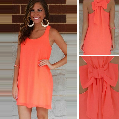 Backside with bowknot design makes this dress look so chic,stylish and sweet. Solid color style,