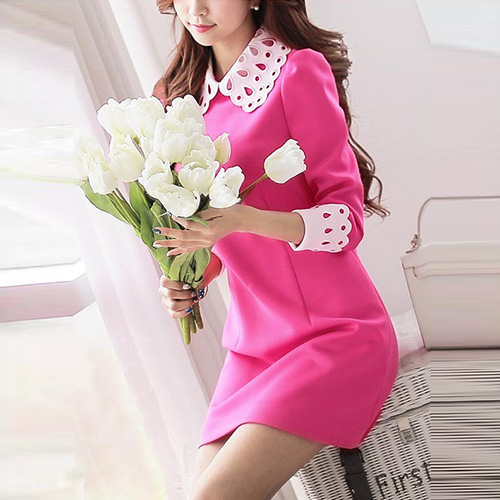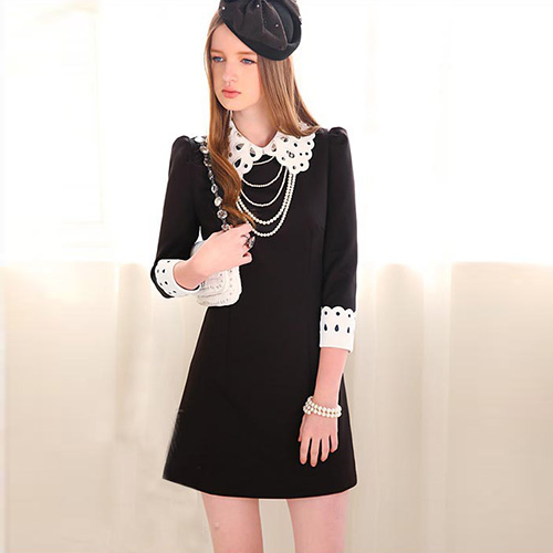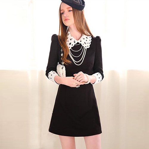 Wow,you look so sweet and elegant in this dress. It features sweet doll collar design,showing your youth and vitality.