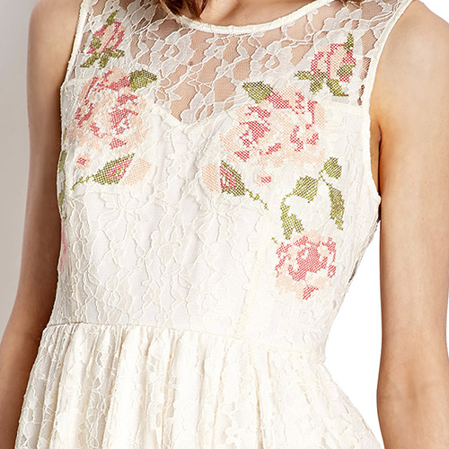 perfect partner. Its sweet floral print pattern and hollow out lace spliced design makes it look