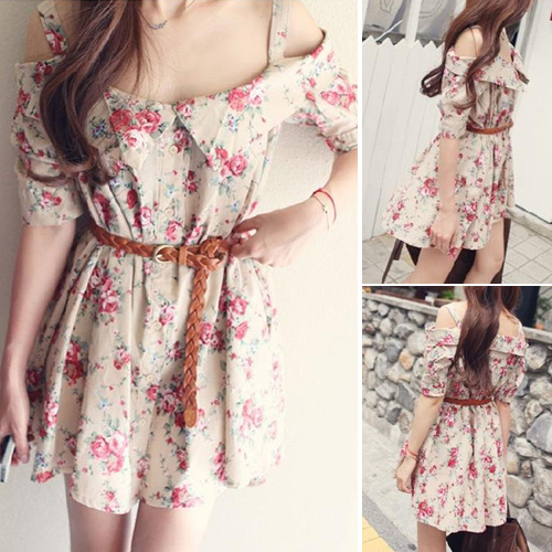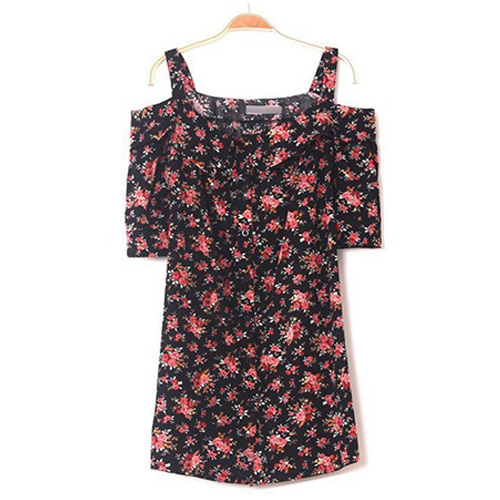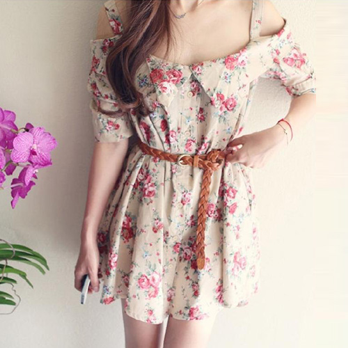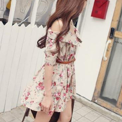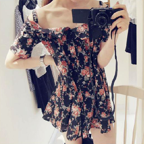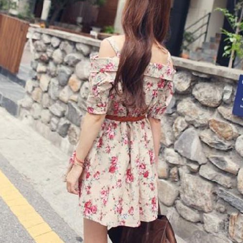 Sweet Floral Print Off-shoulder Short Sleeve Sling Dress