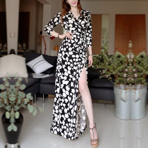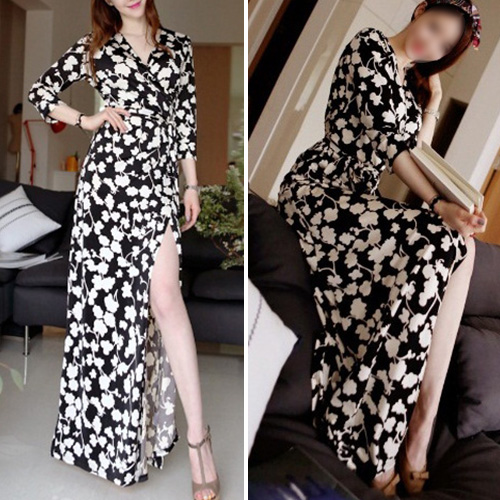 It features sweet floral print pattern,with v-neck and slit hemline design,