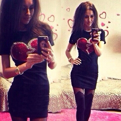 This dress will bring your the stylish and comfortable feeling. It features heart print pattern,sweet and romantic.