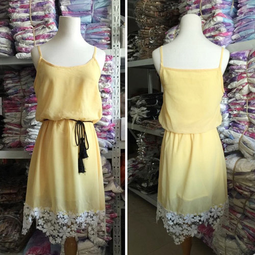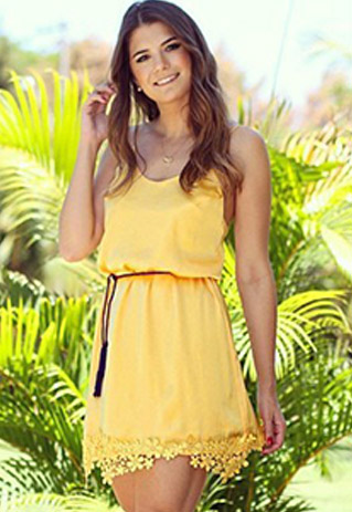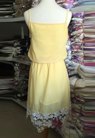 Hemline with lace crochet spliced design,sweet and feminine. Sling style,
