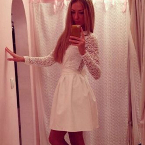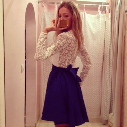 This dress is characterized by lace splice design,looks so sweet and feminine.
