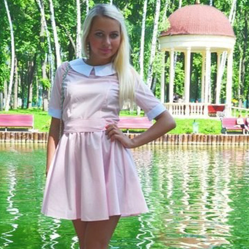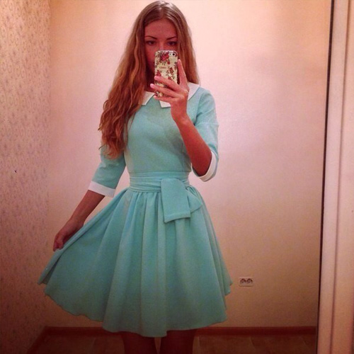 Show your sweet and elegant temperament through this dress. It features sweet POLO collar,contrast color style,3/4 sleeve and high waist design,perfect show your slender figure.