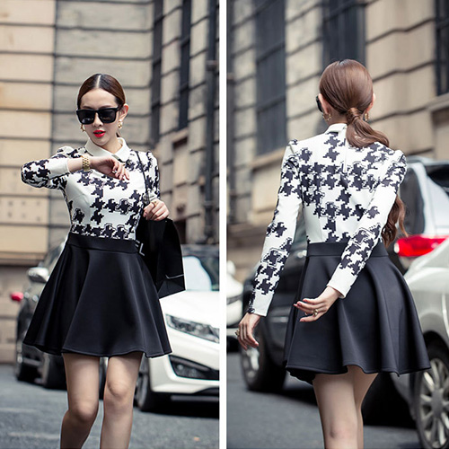 Show your elegant temperament and charming flavor with this dress. Features Houndstooth pattern,fashion and popular. POLO collar design,showing your youth and sweet. Long sleeve,high waist and flowing hemline. Once wearing it,you will instantly become the elegant goddess.