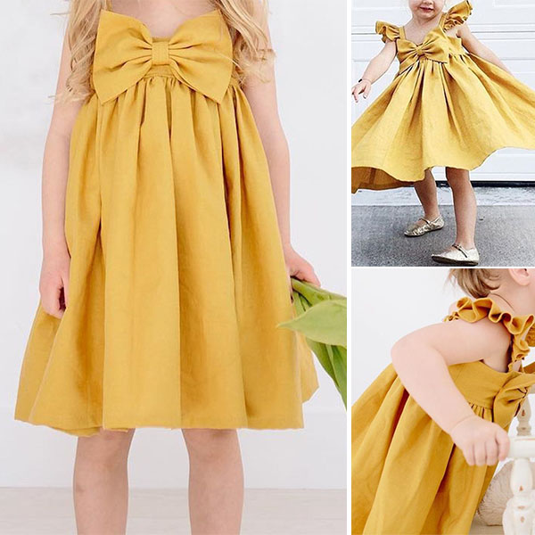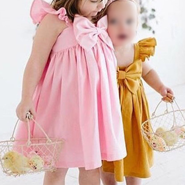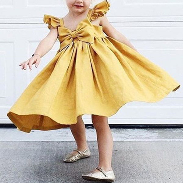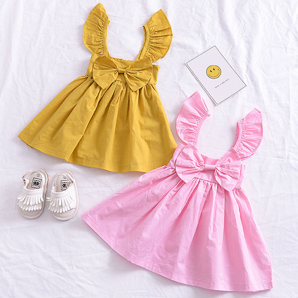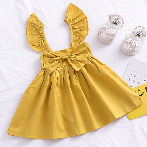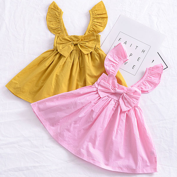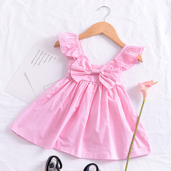 Sweet Solid Color Lotus Spliced with Bowknot Ruffle Hemline Baby's Dress