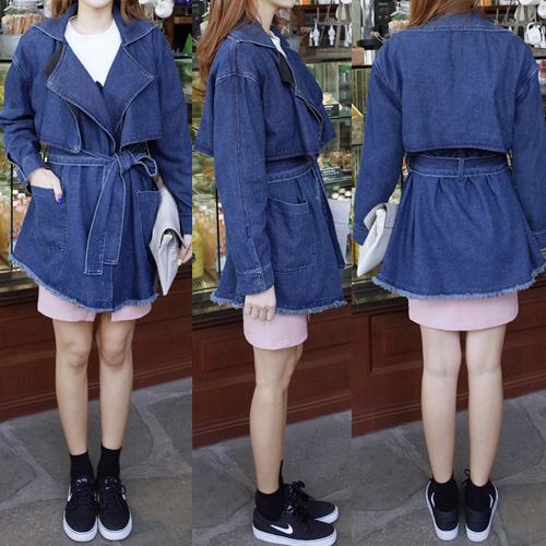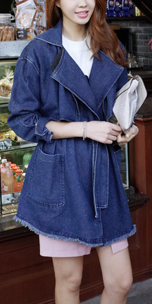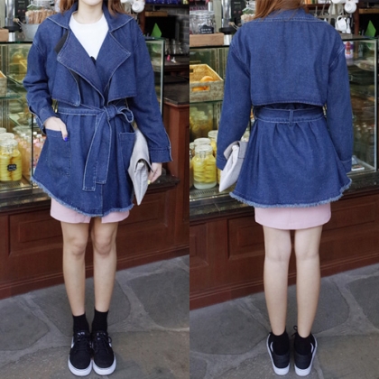 This denim trench coat is completed with long sleeve,lapel and big hand pockets. The best part?