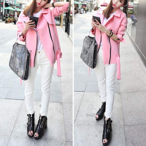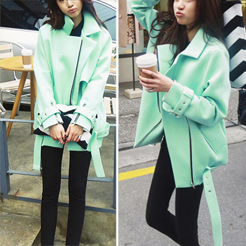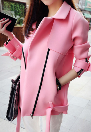 Show your elegant temperament and chic style with this coat. It features solid color,front zipper closure and long sleeve design. Waistband style hemline. Cuff with belt buckle and zipper design. Take it to start your fashion street shoot.