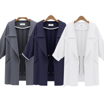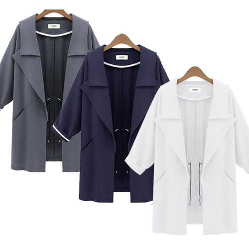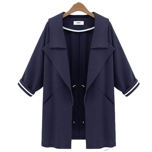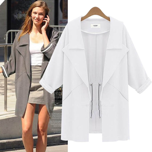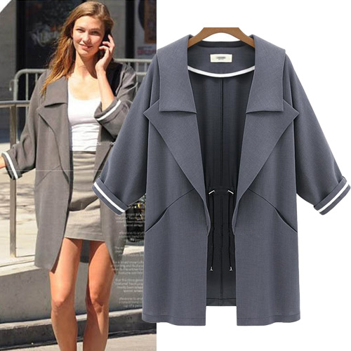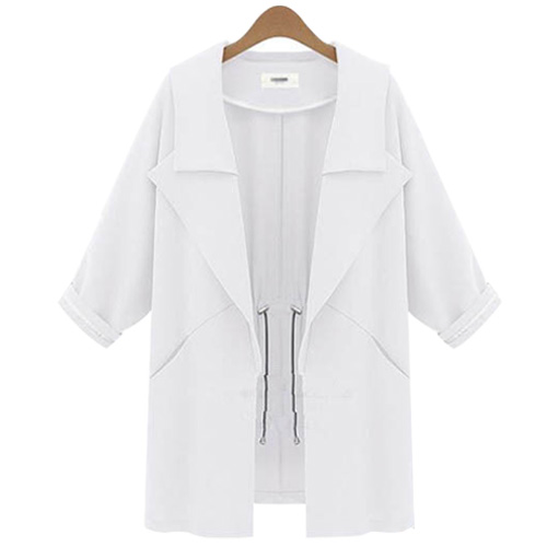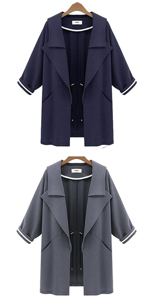 Completed with 3/4 sleeve,notched lapel and elastic waist,this coat will give you a