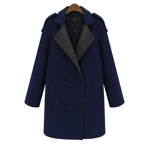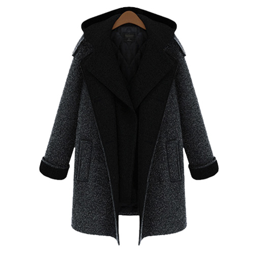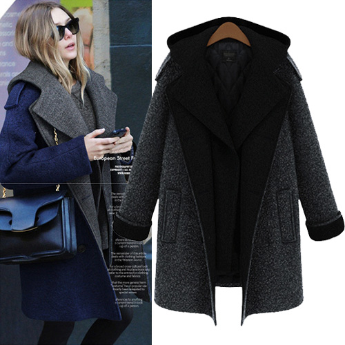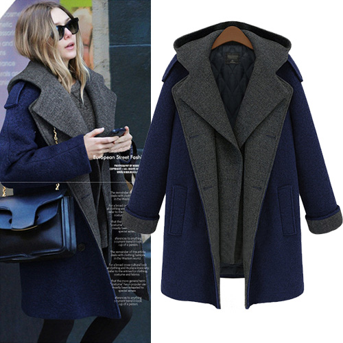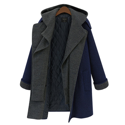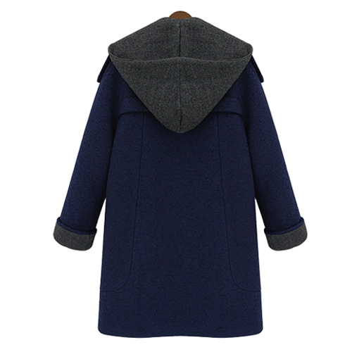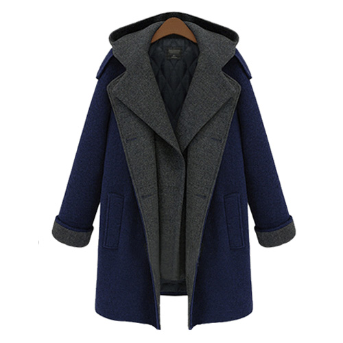 Breasted woolen coat. Featuring contrast color style,with double-breasted and hooded design. Show your