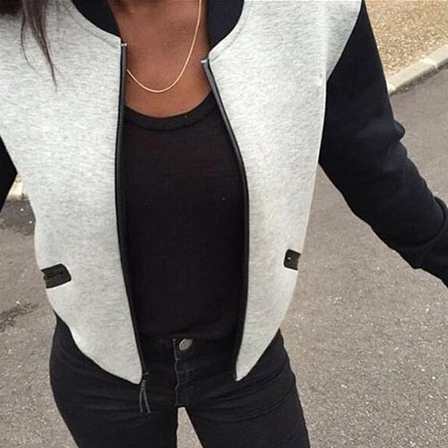 In this season transition time,this little coat is a perfect choice for you. Contrast color style,with long sleeve