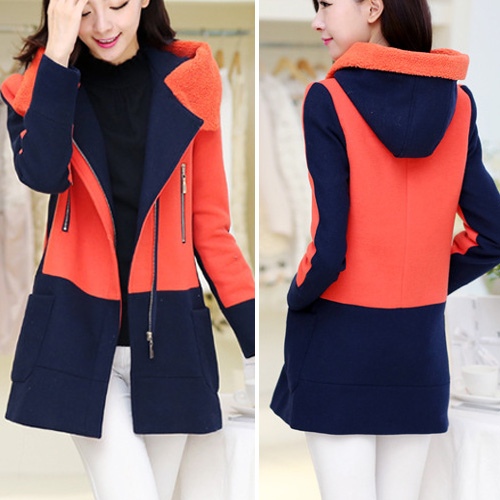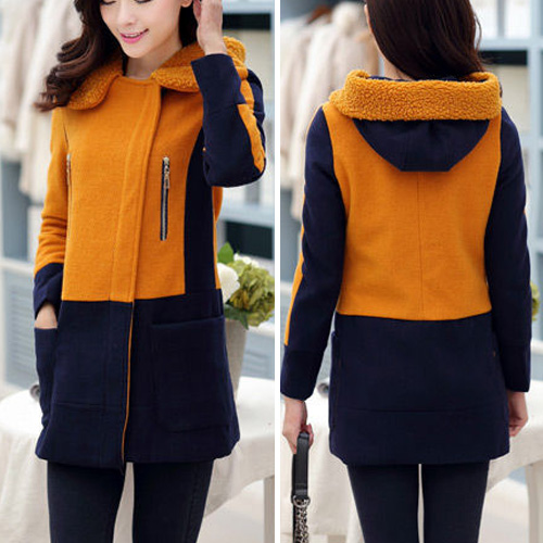 You will spend a warm and wonderful winter with this warm woolen coat. It features contrast color style,comfortable and warm fabric,hooded style and slim fit design. You will look chic and sophisticated in this coat.