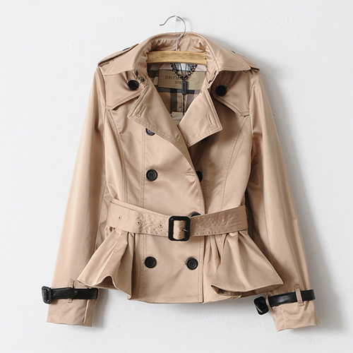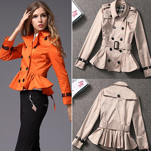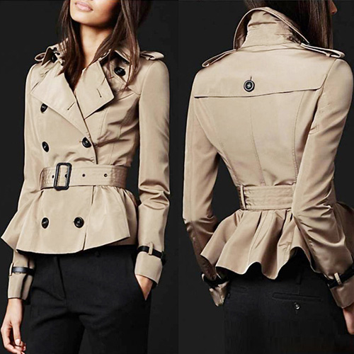 An impeccable silhouette with all of the warmth you desire this elegant trench coat. It features double-breasted style,gathered waist design with sweet flouncing hemline. With sash design. You can pair it with your jeans.
