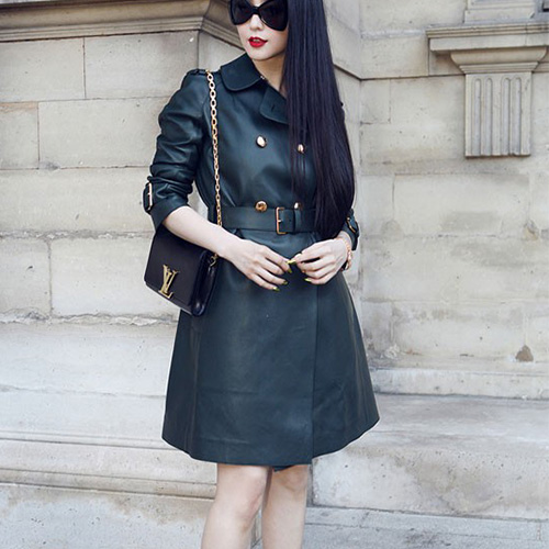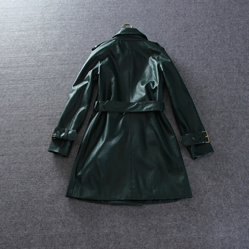 Show your elegant temperament and unique style with this leather trench coat. Features double-breasted design,turn-down collar and long sleeve,cuff with belt buckle design. With sash design,helping gather your waist and show your slender figure.