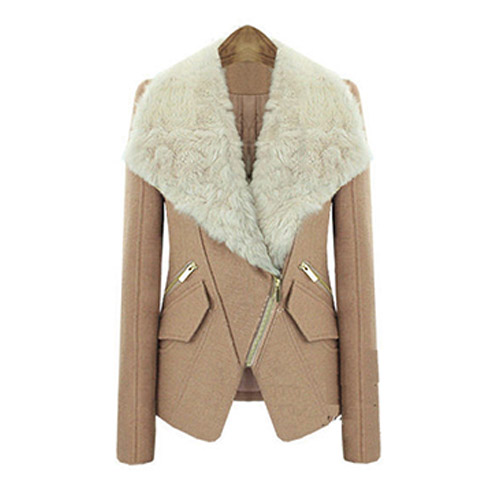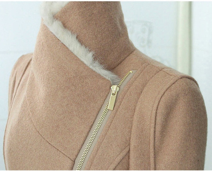 Enjoy your elegant temperament and stunning fashion sense with this woolen coat. It features warm and soft fur collar. Long sleeve and unique oblique zipper closure. Dimensional cut and slim fit design perfect show your slender figure. You can pair it with your jeans and boots.
