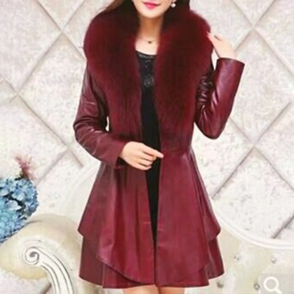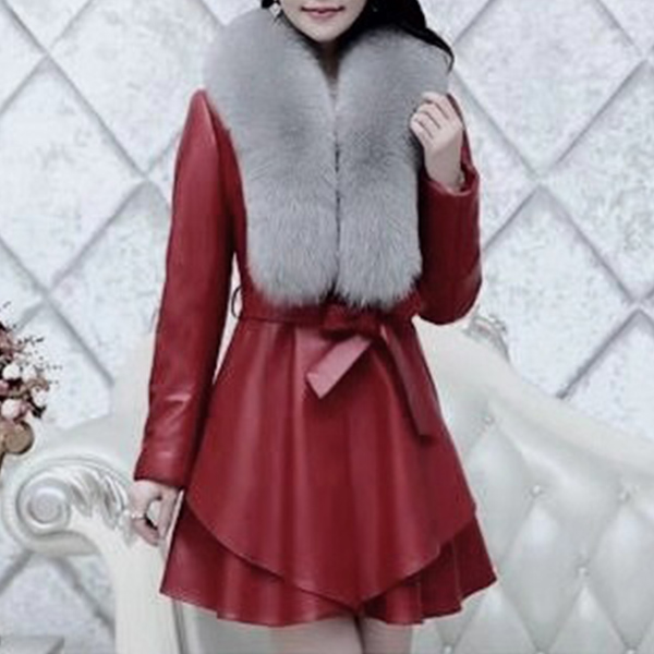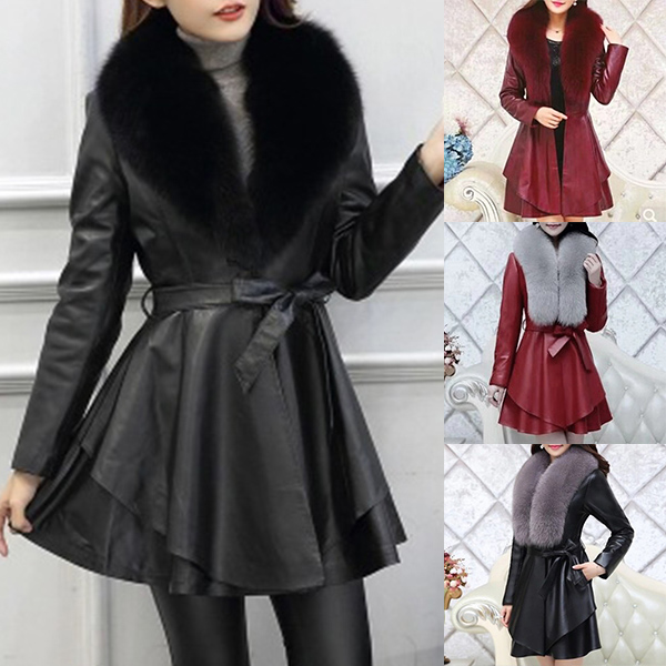 Absolutely you will attracted by this PU leather trench coat at your first glance. Features solid color,fur collor which can be removable. Gathered waist and flowing hemline design,showing your slender figure.