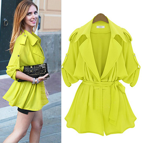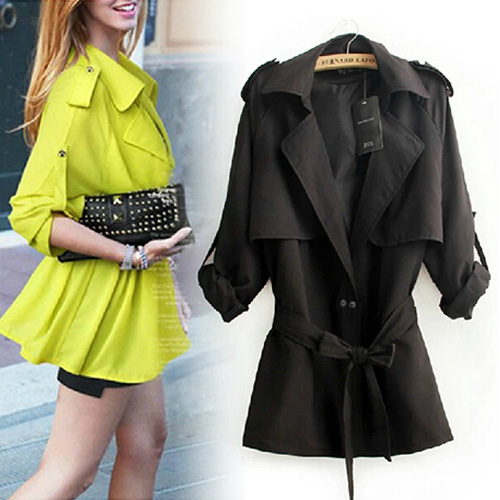 Winter is coming soon,it is a good chance to show your fashion and chic flavor. Trench coat is your good helper. Try this one. Features solid color,lapel and bat sleeve design. Sleeve can be rolled up. With waistbelt to help to show your slender figure.