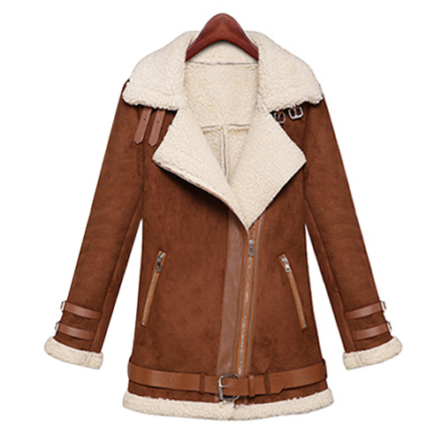 and plush lining,very warm and comfortable to wear. Long sleeve,lapel and belt buckle for decoration.