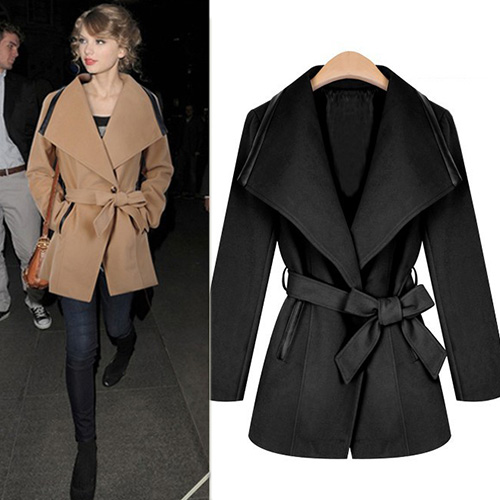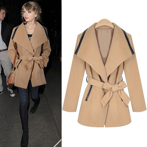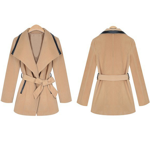 Let's spend a warm and wonderful winter under the help of this woolen coat. Crafted from woolen material,soft and warm. Long sleeve,lapel design,with PU leather spliced design. With sash design,showing your slender figure.