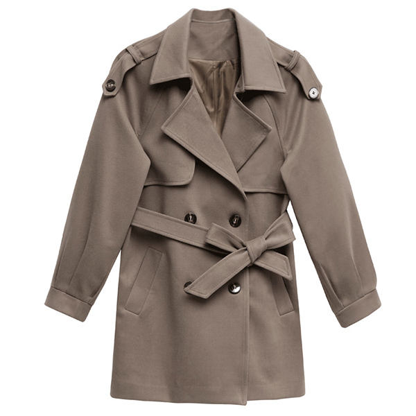 How could you miss this elegant and charming trench coat? It features solid color style,completed with a basic collar,double-breasted and slanted front pockets. Moreover,its detachable waist strap design can give you a fit silhouette. Try to pair it with your leggings and boots.