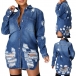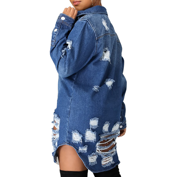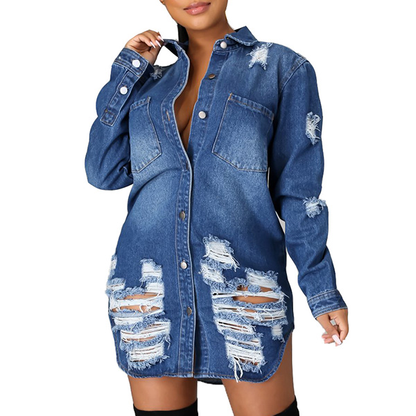 Absolutely this classical denim coat will be your wardrobe staple. Distressed style,equipped with a basic collar,four front pockets and a buttoned front. Start your fashion street shoot with this wonderful piece.