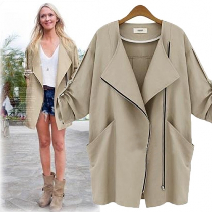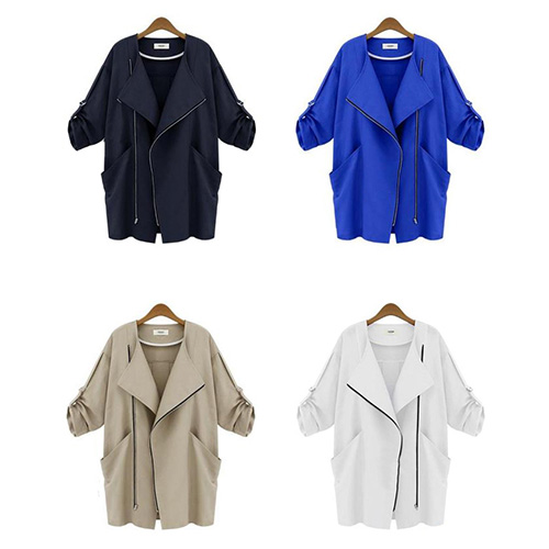 Features solid color,3/4 sleeve design. Front zipper closure,lapel design,with two hand pockets,convenient and practical. Easy to match. A good choice for you in spring and fall.