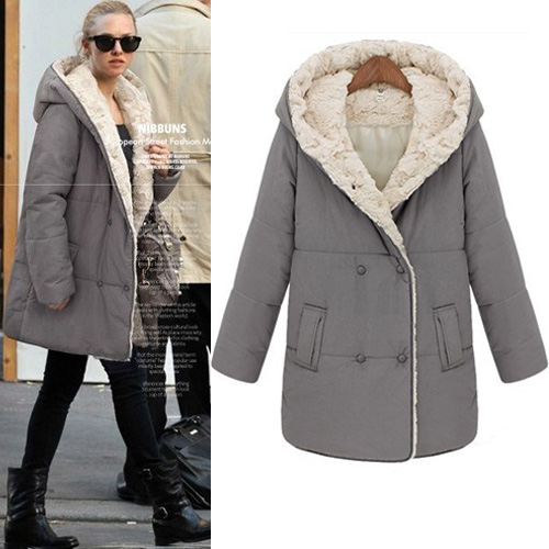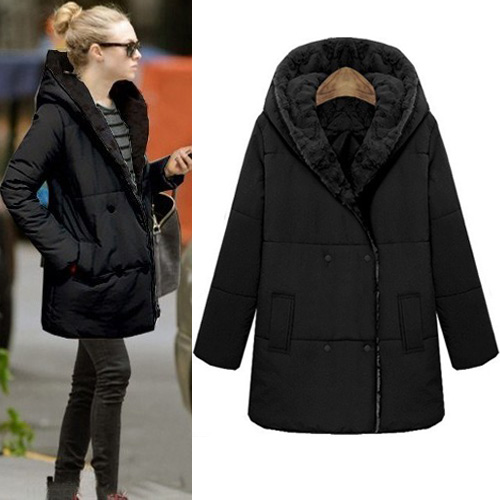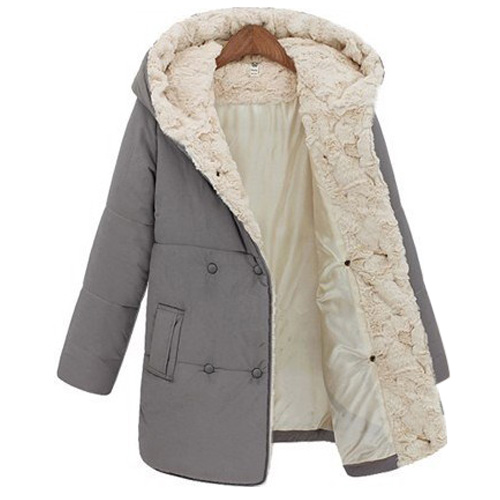 and wonderful winter. It features double-breasted,long sleeve,hoodie design and warm plush lining,very comfortable to wear.