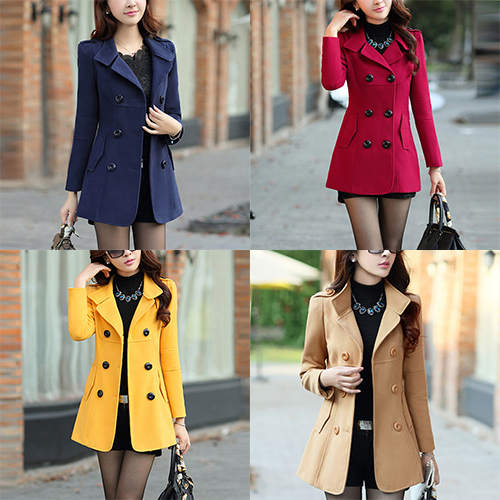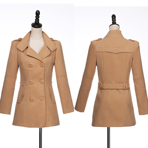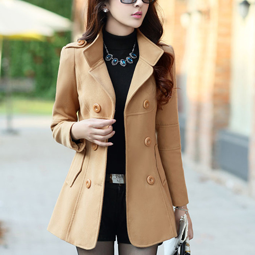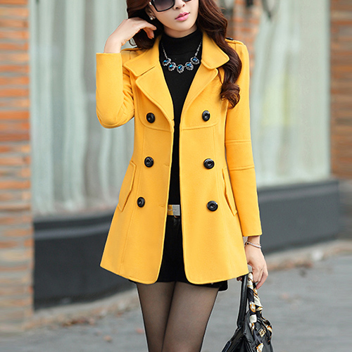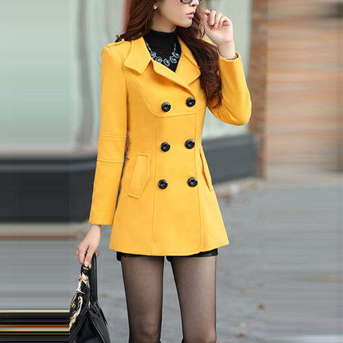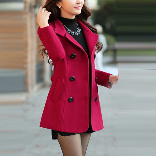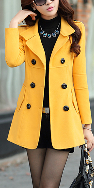 Every woman should have a woolen coat in her closet! How about this one? Features a double-breasted front,