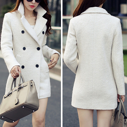 This woolen coat is crafted from warm wool fabric,can not only keep you warm in cold winter,but also can show