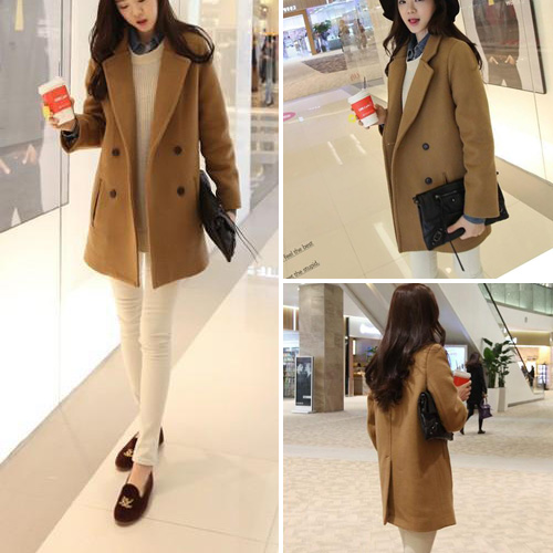 Stay warm and fashion when the temperature starts to drop in this warm woolen coat. It features solid color style,double-breasted design,with two practical and convenient hand pockets. Pairing with your tight pants and fashion boots,you are charming and fashion.