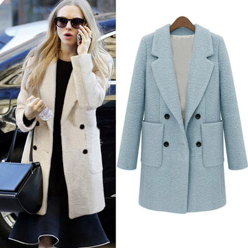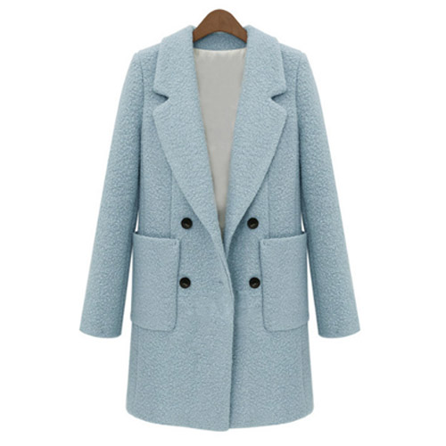 elegant temperament. Features solid color,long sleeve and double-breasted design. Front two pockets,convenient and practical.