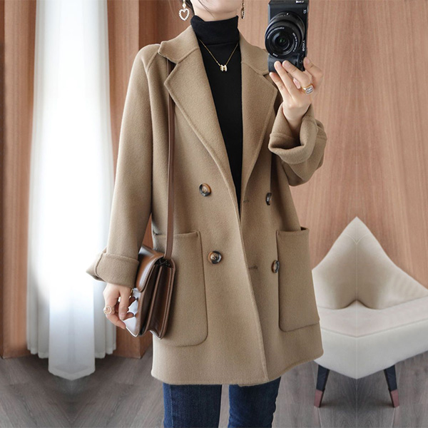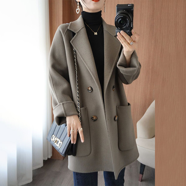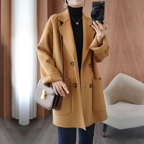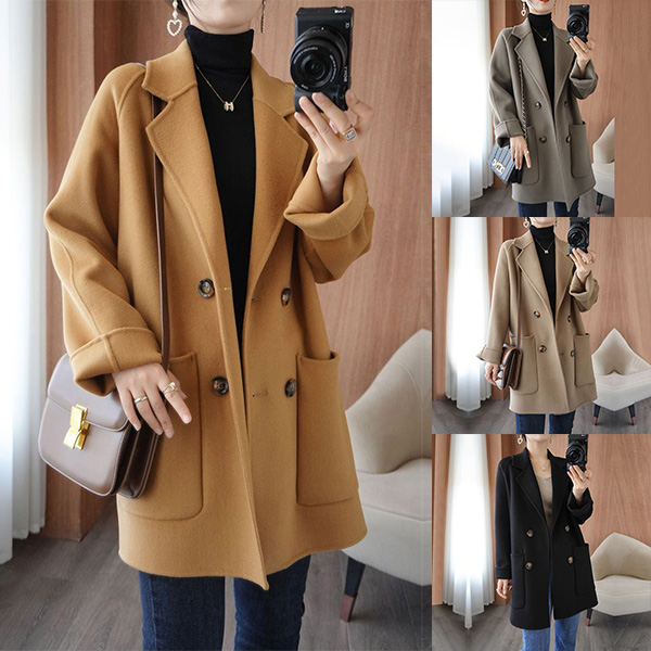 Wanna a coat to show your elegant and perfect body curve? Then why don't you choose this solid color woolen coat? Featuring the double-breasted, notched lapel and side pockets. Pair with a skinny leggings,how elegant and charming you are!
