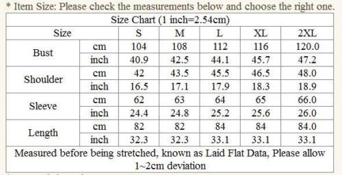 XXL : Bust : 120cm(47.24"); Shoulder : 48cm(18.9"); Sleeve : 66cm(25.98"); Length : 84cm(33.07");