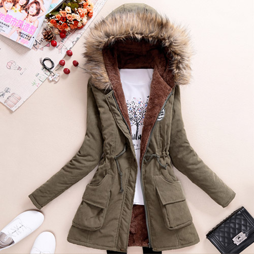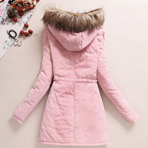Having this warm coat,you will not afraid of the cold winter. It features solid color style,fashion and elegant. Hooded style,with fur design. Plush lining makes you wear warmly and comfortably. Waist part with drawstring design,perfect show your slender figure and keep you warm simultaneously.