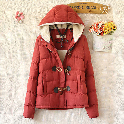 Featuring the retro horn buttons, long sleeve,solid color and hooded design. It is easy to match.