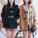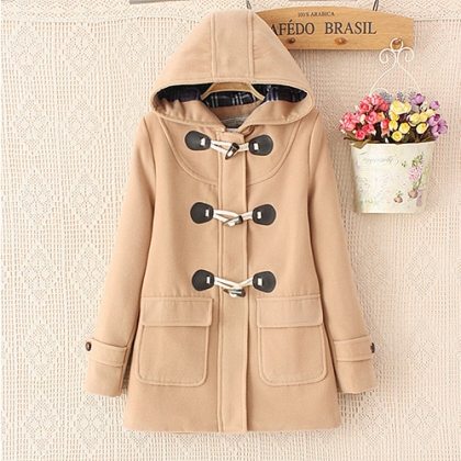this leisure coat would wrap you with warmth. Featuring retro horn buttons, long sleeve,