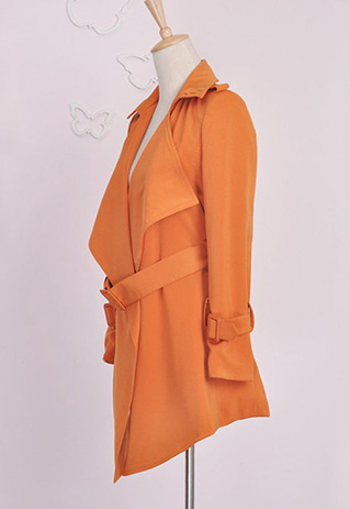 Wanna keep your stylish and elegant flavor even in some cold weather? This trench coat can help you. It features solid color and lapel design. Unique irregular hemline design. With the waist strap design to show your perfect body curve. No matter pair with shorts or dress,it looks beautiful.