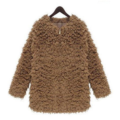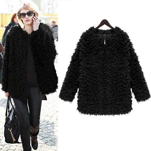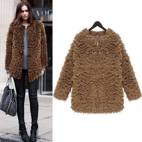 Crafted from high quality faux fur material,soft and warm. Long sleeve,round neck and zipper closure. Easy to match.