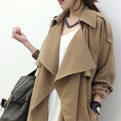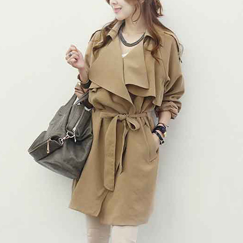 Trench coat is wardrobe staple in spring and fall. Look at this one,featuring solid color style,