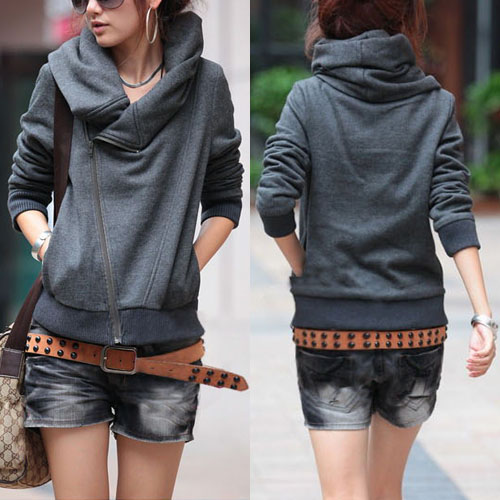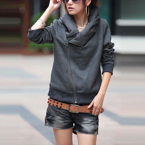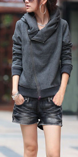 gray color,its oblique zipper and unique collar makes it more eye-catching. Add it to your wardrobe.